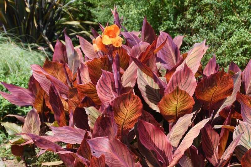 Les cannas sont les plantes idéales pour apporter une touche d’exotisme au jardin ! On les apprécie pour leur floraison estivale (de juillet à octobre) dans des tons chauds, jaune, orange ou rouge, mais aussi pour leur feuillage extrêmement décoratif, vert ou pourpre, parfois très joliment strié. Plantes majestueuses et imposantes, les cannas apportent rapidement beaucoup de volume dans un massif. Les cannas apprécient une situation chaude, assez d’humidité, et un sol riche. Attention cependant, les cannas sont gélifs. Il faut rabattre le feuillage fané à 10 cm du pied, les arracher avant les gelées et les stocker dans une pièce fraîche et aérée ou les cultiver en pot pour les hiverner.
