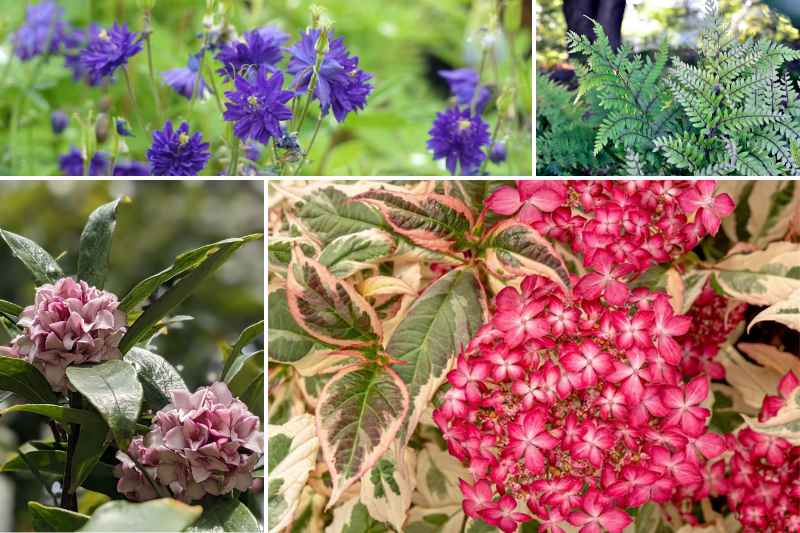 Nous vous proposons une idée d'association avec un Daphné qui animera et embaumera la zone entre janvier et mars, et quelques vivaces légères : Ancolies 'Blue Barlow' pour anticiper sa floraison, quelques fougères et pourquoi pas un autre hortensia de petite taille, comme un Hydrangea involucrata.
