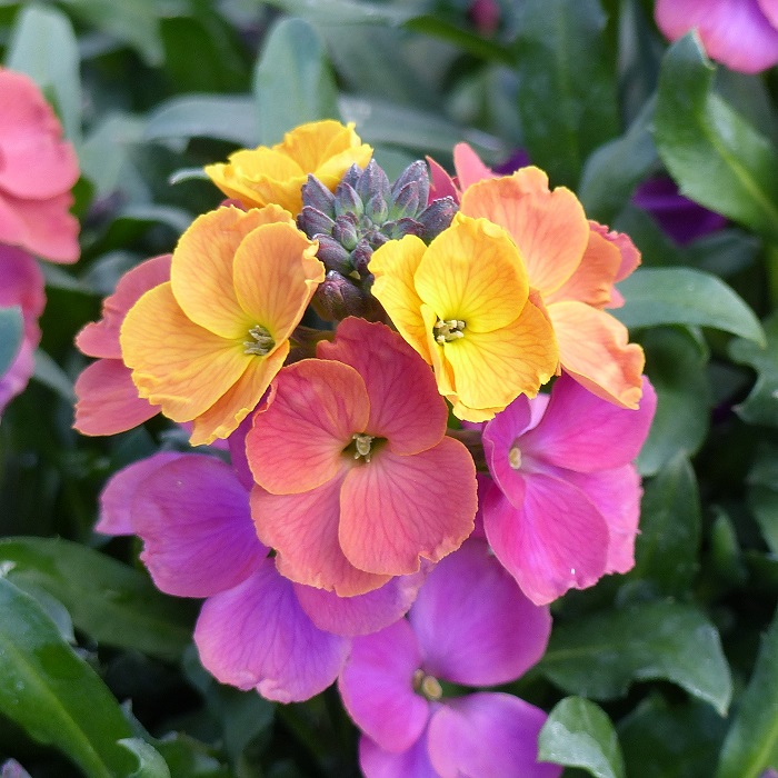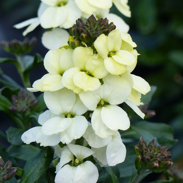 Enfin, c'est peut-être dans le groupe des Erysimum ou giroflées arbustives vivaces que les nouveautés sont les plus remarquables ! En croisant plusieurs espèces entre elles, on a obtenu de nouvelles variétés aux fleurs très grandes, souvent parfumées, dans des coloris impossibles à reproduire fidèlement par semis, comme l'ivoire, le cuivre, et des bicolores uniques en leur genre. De toute façon, ces nouvelles variétés ne font pas de graines, comme leur ancêtre le célèbre Erysimum 'Bowles' Mauve', ce qui leur permet de fleurir plus tôt et plus longtemps que les giroflées ravenelles traditionnelles. Encore une fois, essayez-les, vous nous en direz des nouvelles !