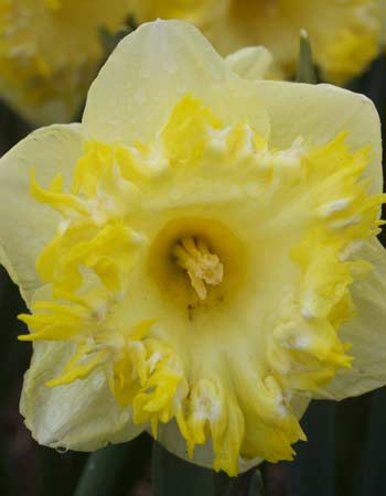 Primé par le KAVB, l'association royale hollandaise pour le développement des bulbes, le Narcisse 'Snowtips' haut de 45 cm montre, en avril, des fleurs très originales qui se démarquent par leur large couronne frisottée, panachée de blanc et jaune. Fantaisiste, cette variété n'en est pas moins fidèle, elle se naturalisera facilement au jardin. Pour la mettre en valeur, associez ce narcisse avec des variétés toutes simples comme 'Paperwhite' ou jouez, jusqu'au bout, la carte de l’originalité en le plantant en compagnie des narcisses 'Wave' ou 'Ice King'.
