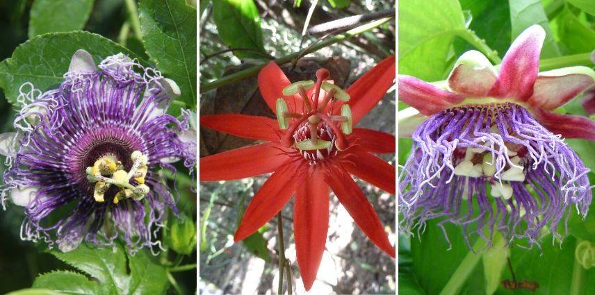 - Passiflora vitifolia : pétales allongés et pointus, rouge orangé très vif