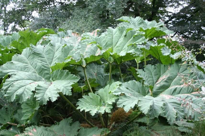 Lorsqu’on s’aventure dans les vivaces rustiques de gros calibre, on serait bien mal avisé d’oublier la Gunnera manicata ou Rhubarbe géante du Brésil. Cette plante constitue, au fil des ans, une touffe énorme de larges feuilles atteignant dans les meilleurs conditions près de quatre mètres en tout sens. Malgré son aire de répartition (Brésil et Colombie), elle est tout à fait capable de résister à des gelées de -15°C si on a pris soin de protéger la souche. Sa croissance est extrêmement rapide, la Gunnère a tôt fait de refaire l’ensemble de ses feuilles gigantesques et à l’allure exotique, ressemblant à celles de notre Rhubarbe, en une seule saison. Elle est totalement caduque, renaissant depuis la souche chaque printemps, sous la forme d’ un énorme bourgeon surgissant du sol. Elle apprécie la mi-ombre et a besoin d’un sol toujours humide, aux abords d’une mare ou d’un bassin par exemple, et très riche. A noter, que l’on peut la cultiver dans un très grand pot mais elle restera de taille plus modeste et sera moins pérenne.