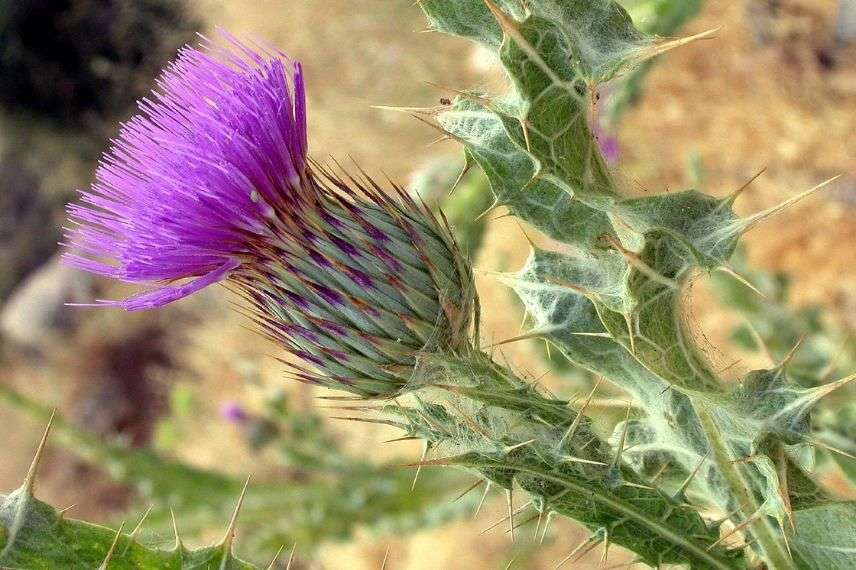 Onopordum nervosum (ou O. acanthium) ou “Chardon-aux-ânes” est un chardon d’Europe de la famille des astéracées, remarquable car il porte fièrement d’énormes capitules ressemblant de loin à des fleurs de centaurées géantes. Plus bisannuel que vivace, l’Onopordum se ressème toutefois abondamment aux endroits qui lui conviennent. Il ne forme la première année qu’une grosse rosette persistante de longues feuilles d’un beau gris blanchâtre, larges et épineuses. Mais la seconde année, une immense hampe florale ramifiée s’élève du cœur de cette rosette, portant elle aussi de larges feuilles épineuses gris blanchâtre. Chaque tige se termine alors par une inflorescence composée d’un réceptacle vert surmonté de fleurs purpurines assemblées en brosse (comme les artichauts). L’Onopordon se cultive dans des sols secs, voire arides ou incultes et en plein soleil (son milieu naturel en réalité) mais se porte très bien dans les sols plus riches et plus humides.