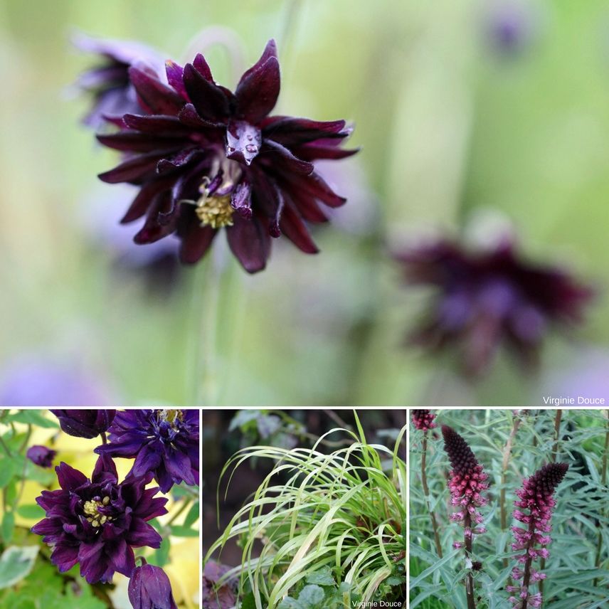 Cette ancolie ne passe pas inaperçue avec ses fleurs très doubles bordeaux presque noir. Elle fleurit de mai à juillet et se ressème. Elle est plus belle à mi-ombre ou au soleil non brûlant.
