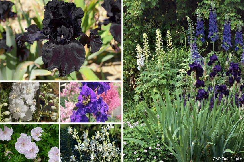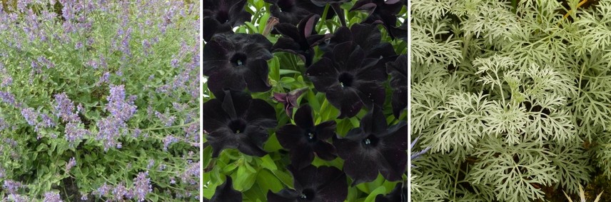 Les fleurs noires peuvent être associées à des fleurs blanches, des feuillages argentés ou encore vert chartreux qui vont se mettre en valeur mutuellement.