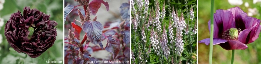 Vous remarquerez que les fleurs noires sont en réalité d’une couleur pourpre ou violacée très sombre. Pour harmoniser les couleurs, vous pouvez jouer là-dessus et choisir une teinte approchante, plus claire. Vous pouvez jouer avec les feuillages sombres aussi.