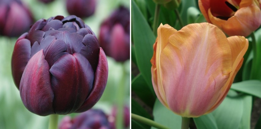 Une association simple mais efficace : Tulipe ‘Reine de la nuit’, Myosotis, Tulipe ‘Angelique’.