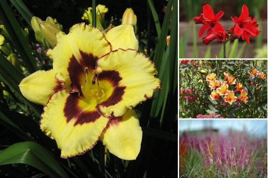 Hemerocallis ‘El Desperado’, Crocosmia ‘Hellfire’, Alstroemeria ‘Indian Summer’, Muhlenbergia capillaris