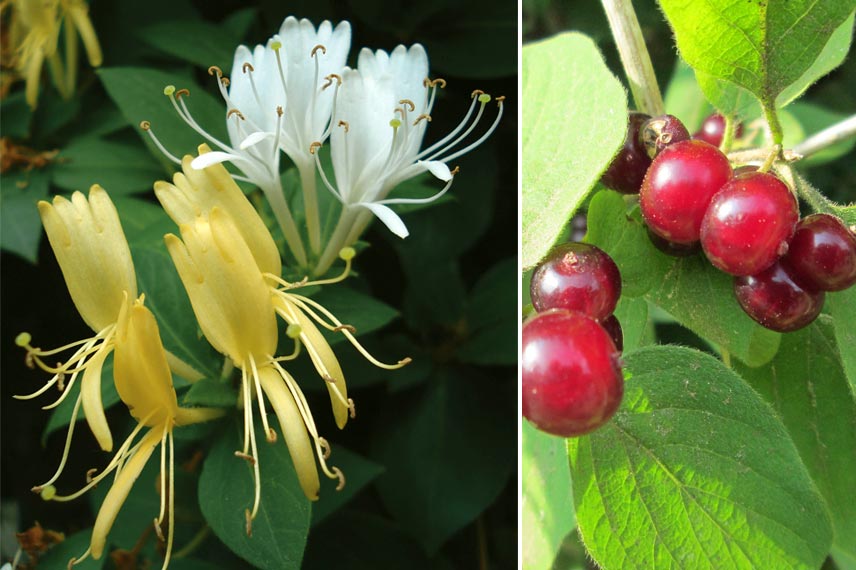 Fleurs de Lonicera japonica Halliana et fruits de Lonicera xylosteum