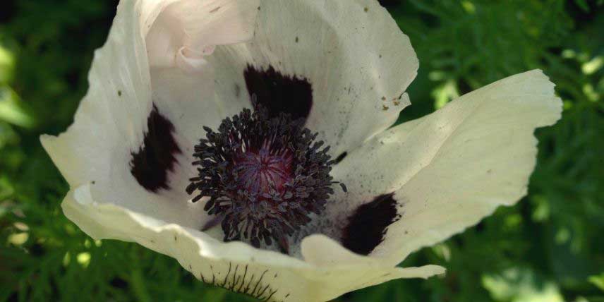 Le Pavot d’Orient ‘Royal Wedding’ est véritablement impressionnant avec ses fleurs de 20 cm de diamètre. Il fleurit habituellement en juin – juillet et donne des fleurs de couleur blanc pur, ponctuées au centre par de larges macules noires, et de délicates nuances rouge foncé, qui donnent plus d’intensité à la floraison. C’est une floraison délicate et romantique, néanmoins profonde et intense. Plantez-le au soleil, de préférence dans une bonne terre de jardin, riche, fraiche et légère.