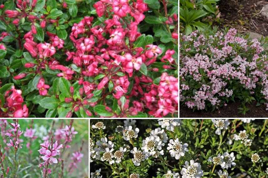 Les arbustes à fleurs roses apportent énormément de charme et de romantisme à l’univers d’un jardin : se mariant très bien à des tons blancs et bleus, ils apportent beaucoup de douceur et de fraîcheur quand ils sont associés à des feuillages grisés ou glauques. Dans des tonalités plus franches, ils confèrent aussi beaucoup d’énergie et de dynamisme aux espaces.