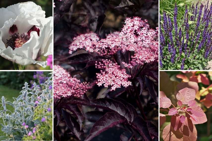 Parmi les sureaux noirs, le cultivar ‘Black Beauty’ est un élégant arbuste caduc au feuillage pourpre et aux fleurs roses vaporeuses. Sa floraison intervient en mai ou juin selon les régions. Il se couvre alors de petites fleurs groupées en panicules de 10 à 15 cm. Elles virent au blanc en s’épanouissant, et sont particulièrement attractives, se détachant du feuillage pourpre très découpé. Les fleurs exhalent un parfum légèrement citronné et sont mellifères. Elles se transforment en baies rouge foncé puis noires à maturité.