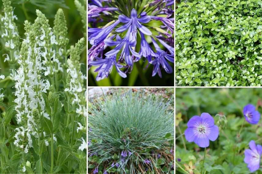 • les bleus variés et soutenus des sauges : la sauge des marais ou la sauge Blue Note