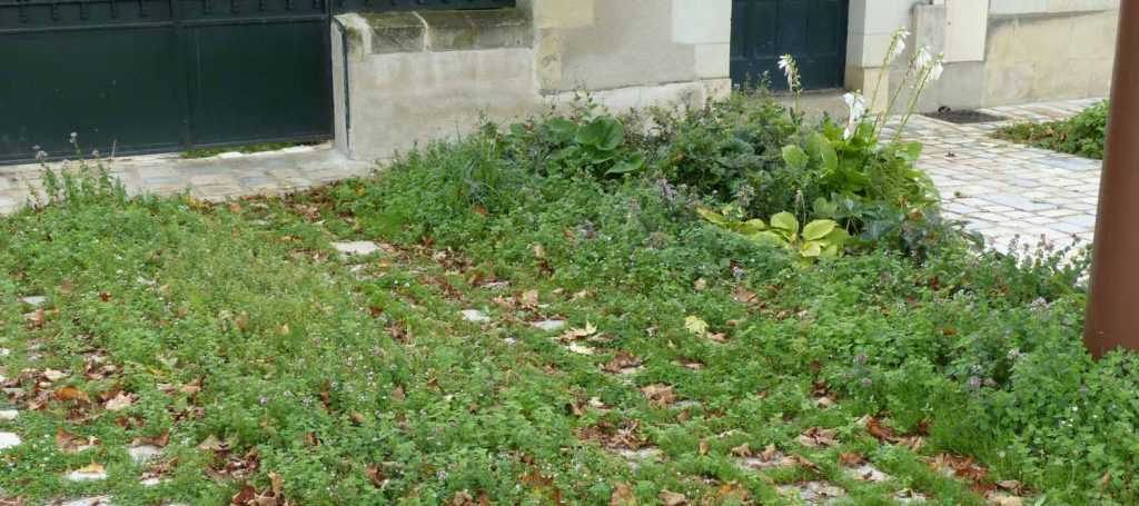 - un petit désherbage occasionnel, au cas où des adventices parvenaient à trouver un petit espace libre pour s’installer,