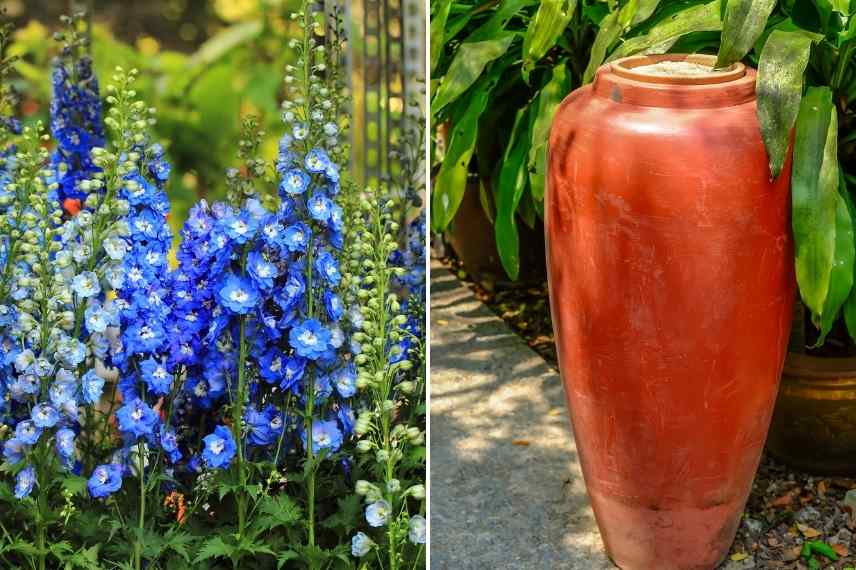 Cumuler les potées permet entre autre de faire fi de la mauvaise terre d’un petit jardin de ville (Photos : G. David, et en haut à droite S. A. O’Hara)