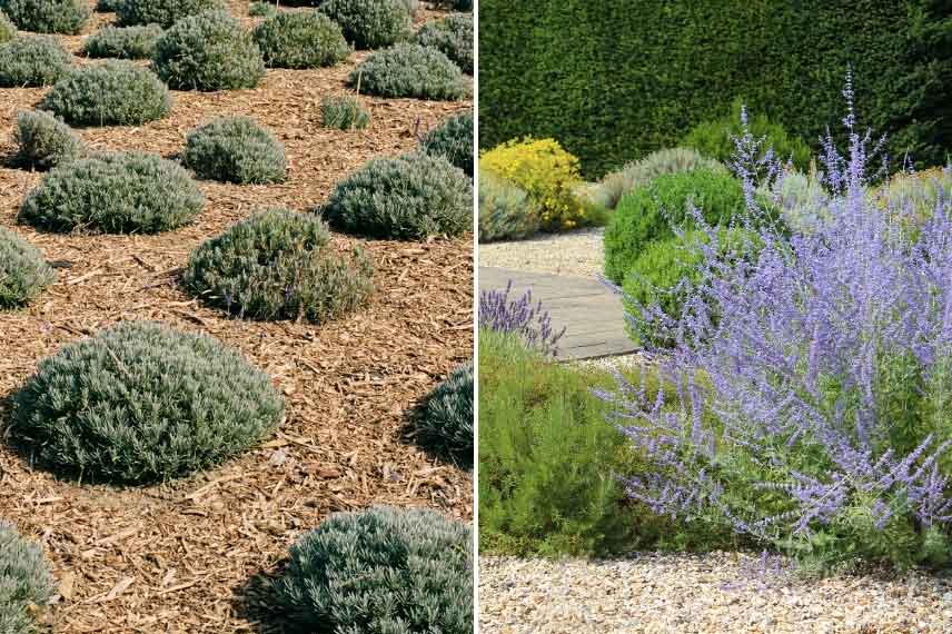 Le paillage consiste à recouvrir le sol entre les végétaux. Surtout les deux premières années, ne serrez pas le paillage trop près des plantes pour éviter le pourrissement du collet. Le paillage a plusieurs fonctions :