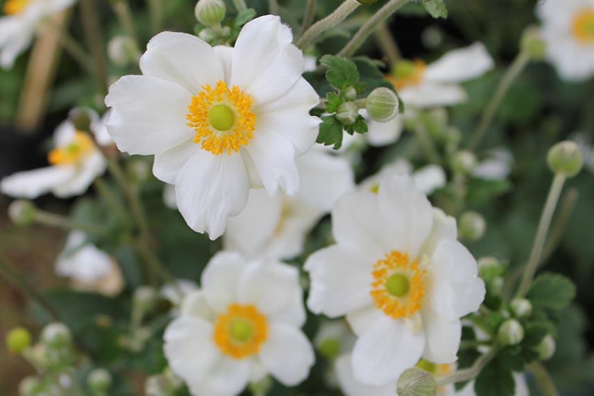 - Une fois la ou les variétés d’anémones japonaises à fleurs blanches sélectionnées, laissez-vous guider par notre dossier complet : Anémones du Japon : plantation et entretien.
