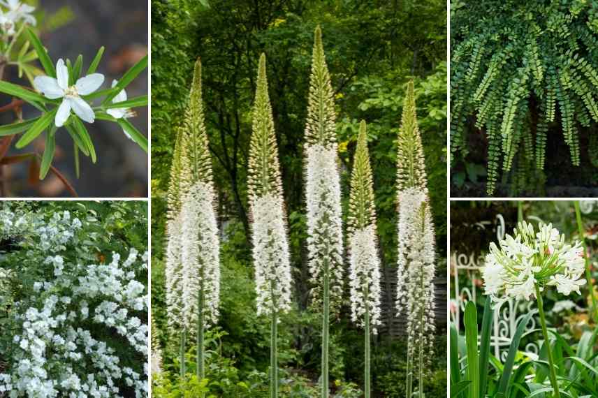 - Le blanc des floraisons donne un éclat immédiat aux zones ombragées