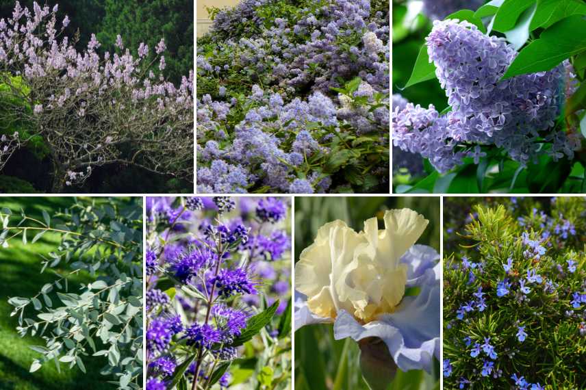 Un des très rares arbres à floraison bleue poussant sous nos latitudes, le Paulownia peut s’enorgueillir d’être le choix parfait pour régner de sa splendeur dans un jardin monochrome bleu. Entre avril et mai, il dévoilera ses superbes inflorescences en thyrses bleu violet. Cette floraison étant éphémère, il est utile de l’associer à d’autres arbustes ou grimpantes à floraison bleue, fleurissant en même temps comme un lilas ‘Capitaine Baltet’ et une glycine de Chine, et plus tard d’autres essences, pour le relayer. Vous composez ainsi un jardin bleu sur plusieurs mois !