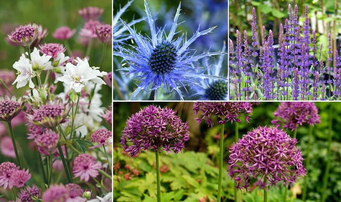 Plantez vos géraniums en massif avec d’autres vivaces. Vous pouvez les associer à des astrances, ancolies, sauges, astilbes ou népétas. Le géranium se marie particulièrement bien avec les alliums, leurs couleurs s’harmonisent facilement et se répondent. Choisissez par exemple Allium christophii, pour ses grandes inflorescences violettes et aérées. Les tons doux (bleu, mauve, rose) s’associent parfaitement avec les feuillages argentés, comme celui des Stachys. Vous pouvez profiter des hampes florales de Digitalis ‘Suttons Apricot’ pour apporter de la hauteur et de la légèreté. Le géranium se marie bien aussi avec l’alchémille (Alchemilla mollis).