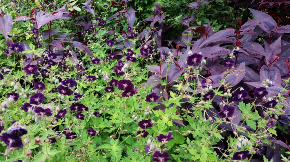 Un article de Michael sur notre blog : Duo de vivaces aux tons noirs pourprés (Geranium phaeum ‘Lily Lovell’ et Persicaria microcephala ‘Red Dragon’).