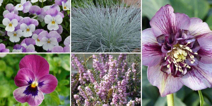 Profitez des plantes vivaces à floraison précoce pour accompagner les petites pensées dès la fin de l’hiver. Les hellébores sont de parfaits candidats pour cela. Vous pouvez leur associer des graminées persistantes, comme la fétuque bleue ou des Carex, qui seront d’excellents faire-valoirs. Pensez également aux bruyères d’hiver qui restent attrayantes sur de longs mois. Enfin, si le coeur vous en dit, ajoutez quelques bulbes comme des muscaris ou des aconits d’hiver.