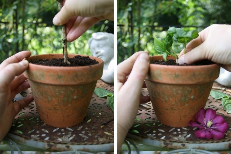 - Faites un trou dans le substrat à l’aide d’un bâtonnet ou d’un crayon, puis placez-y la bouture. Tassez délicatement autour de la tige.