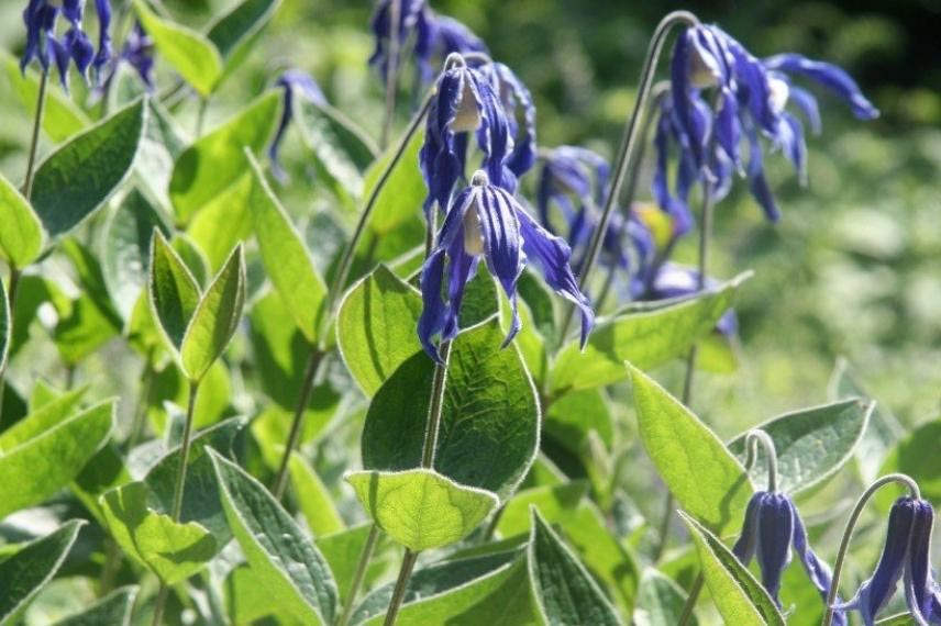 - Clematis integrifolia, dont la floraison estivale en clochettes bleues est délicatement parfumée