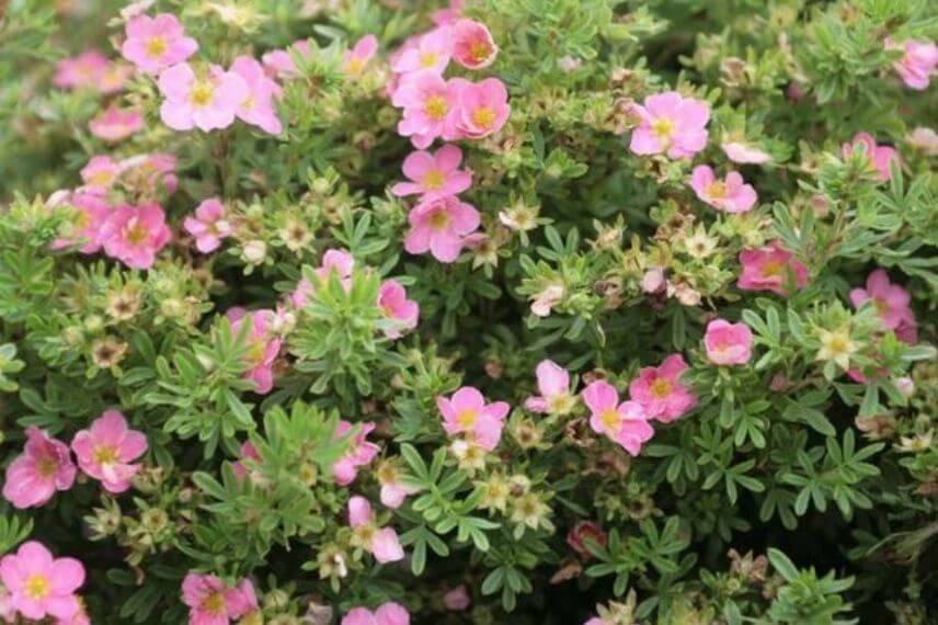 - Enfin, les variétés de potentilles à fleurs roses ne sont pas en reste : ‘Bellissima’ et ses fleurs d’un rose vif immanquable, ‘Pink Paradise’, qui porte bien son nom en nous gratifiant d’une abondante floraison rose franc et ‘Lovely Pink’, dont les petites fleurs rose tendre rappellent les églantines.