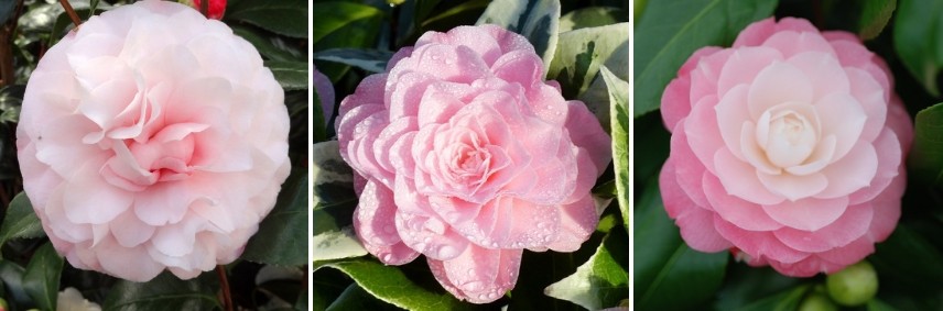 Les 3 variétés vedettes des camélias à fleurs de rose sont : Camélia Tom Pouce, Camélia Coquetti et le Camélia Valtevareda.
