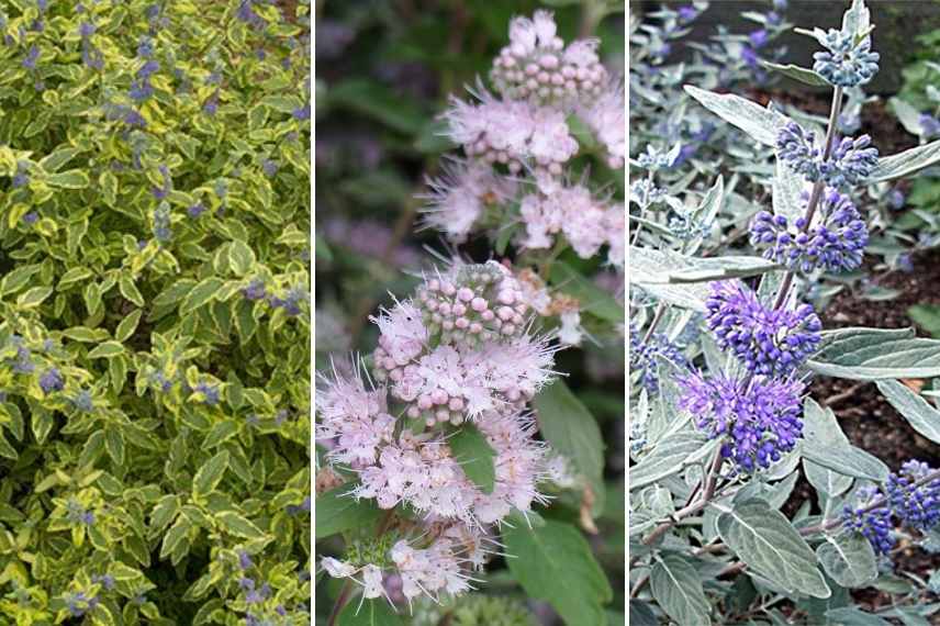 - Les bleues lavandes : le Caryopteris ‘Hint of Gold’, le Caryopteris ‘Summer Sorbet’, ainsi que le Caryopteris ‘Worcester Gold’.