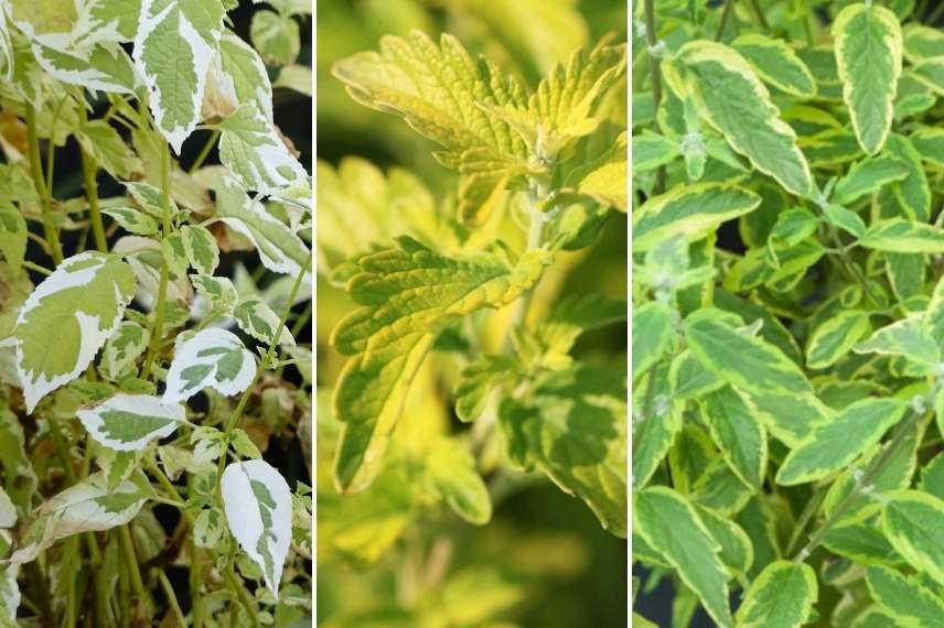 - Le Caryopteris ‘White Surprise’ et son feuillage vert marginé de blanc crème.