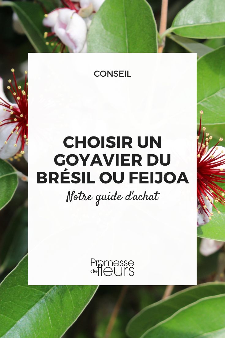 Le Goyavier du Brésil ou Feijoa (Acca sellowiana) est un petit arbre fruitier autant apprécié pour son feuillage décoratif persistant gris-vert, sa floraison printanière originale que pour ses fruits verts acidulés aux allures de gros kiwis et d’avocats. Il forme un bel arbre au port buissonnant aux proportions raisonnables, dépassant rarement 4 m de hauteur. Au jardin, il se plante en haie, en isolé ou en bac dans les régions plus fraîches. Relativement rustique (jusqu’à -12 °C au moins), le Feijoa se cultive parfaitement chez nous au soleil dans tous les types de sols. Il ne fructifiera cependant que dans nos régions chaudes. Qu’à cela ne tienne, vous le cultiverez à des fins ornementales ! Saveur des fruits, période de floraison ou hauteur, parcourez notre guide d’achat pour trouver le Feijoa qui vous conviendra le mieux !
