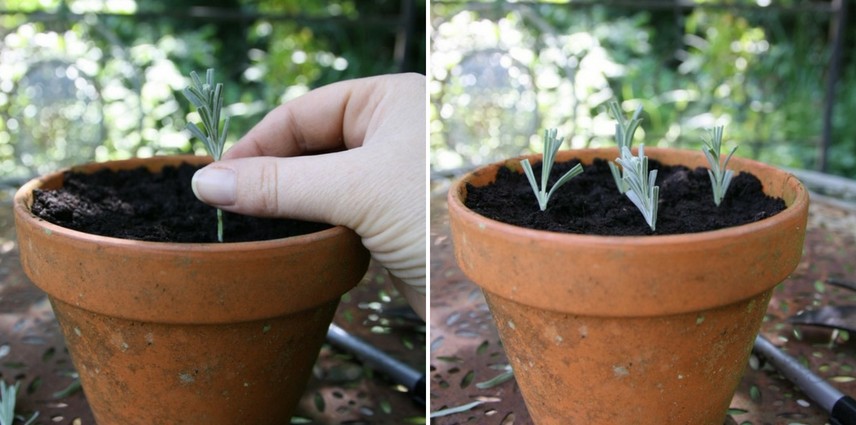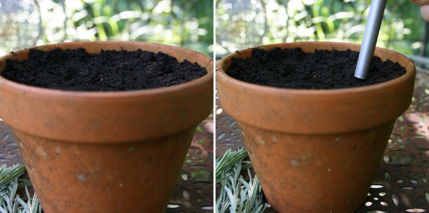 - à l’aide du crayon, faites un trou dans le terreau avant d’y insérer votre rameau. Faites bien adhérer le terreau à la bouture avec les doigts. Une astuce consiste à piquer les boutures sur la périphérie du pot. Mieux drainé, la proximité des parois du pot donne de meilleurs résultats.