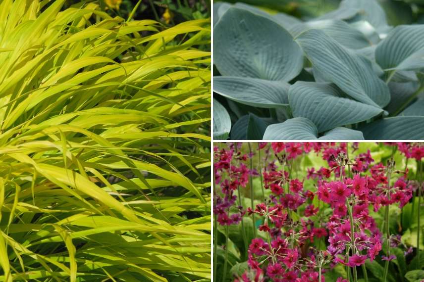 Une idée d’association : Hakonechloa macra ‘All Gold’, Hosta tardiana ‘Halcyon’, Primula pulverulanta