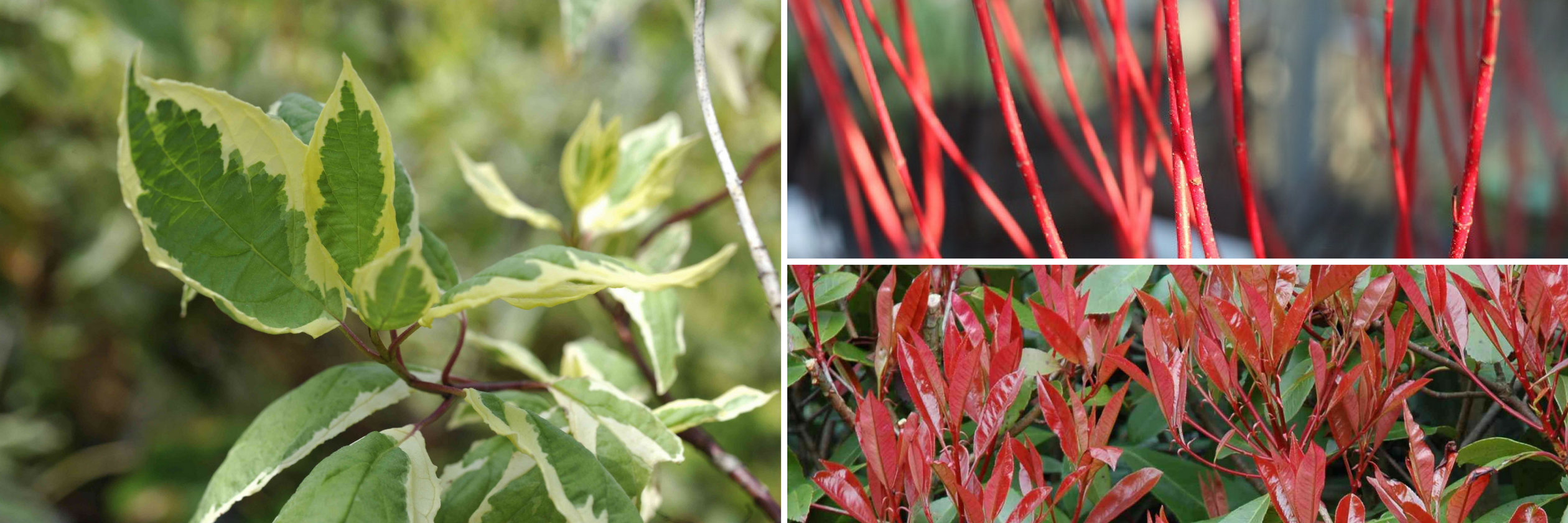 Rouge corail, rouge sang, acajou, jaune vif ou vert, mixez leurs écorces vives pour des compositions hautes en couleurs, mettez en valeur leur feuillage lumineux avec des feuilles dorées ou misez sur les contrastes pour donner du relief à un fond de feuillages sombres. Ils permettent de mettre d’autres plantes en valeur dans les massifs, notamment des fleurs hivernales comme les narcisses, les hellébores ou les roses de Noël.