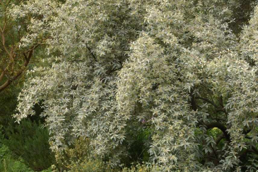 Eleagnus Ebbingei ‘Gilt Edge’ et Eleagnus angustifolia dit Olivier de Bohême, ou arbre de paradis, ici en arbre majestueux (Photo : G. David)
