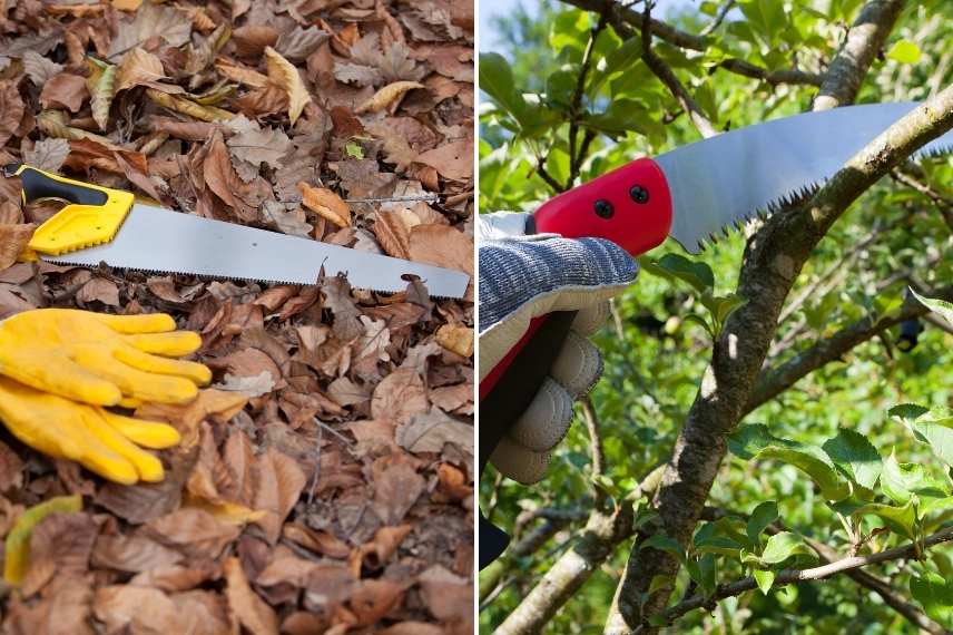 Une petite scie d’élagage, à lame droite ou courbée, plus maniable, sera parfaite quant à elle pour élaguer branches et rameaux (morts ou vivants) à gros diamètre : elle se faufile partout et s’adapte aux utilisateurs qui n’ont pas beaucoup de force !