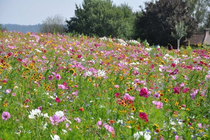 A l’opposé du gazon anglais très entretenu, la pelouse fleurie appelée aussi parfois « gazon suisse » possède un aspect très naturel et champêtre. Plus écologique qu’une pelouse classique, elle permet l’engazonnement de grands espaces demandant peu d’entretien. Elle réduit de manière conséquente les zones de tonte. Composée de fleurs mellifères, elle favorise la biodiversité au jardin en attirant les insectes pollinisateurs. Ce type de gazon associe des graminées variées comme les fétuques et des fleurs annuelles et vivaces qui se ressèment spontanément et métamorphosent le jardin pendant plusieurs années. De très nombreux mélanges de semences pour créer des prairies ou jachères fleuries sont proposés dans notre pépinière en ligne. Ils sont adaptés à des zones spécifiques (ombre, plein soleil, pied des arbres, terrain sec, talus, fissures…) et se déclinent dans différents styles (bohême, mellifère, sauvage…).