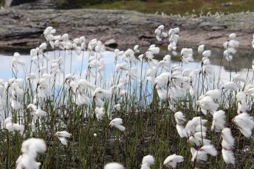 L’Eriophorum angustifolium est une graminée très originale à la silhouette plus haute que large. Elle atteint 40 cm d’envergure pour une hauteur de 60 cm, des dimensions qui lui permettent d’intégrer un petit jardin. Dotée de feuilles très minces, cette graminée est surtout remarquable par sa floraison en inflorescences duveteuses qui rappellent des boules de coton. Ces fleurs originales d’un blanc pur semblent déchiquetées par le vent.