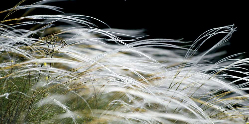 Avec leur feuillage d’une rare finesse, les stipa sont parfaites pour alléger les massifs. Le vent semble jouer avec elles, faisant onduler leurs inflorescences et feuillage. Elles ont en outre l’avantage d’être persistantes. Vous pouvez choisir la superbe Stipa pennata, aux épis argentés et soyeux, qui volent avec le vent et reflètent le soleil. Ou la plus classique Stipa tenuifolia, Cheveux d’ange, qui fera un très bel effet dans un jardin sauvage. Plus haute, Stipa gigantea possède une exceptionnelle floraison vaporeuse, portée par de longues tiges dressées. Découvrez aussi le Miscanthus sinensis ‘Gracilimus’, au feuillage très fin et inflorescences soyeuses. Enfin, profitez des épis pourpres et allongés de Pennisetum setaceum ou des épis blancs et plumeux de Pennisetum villosum.