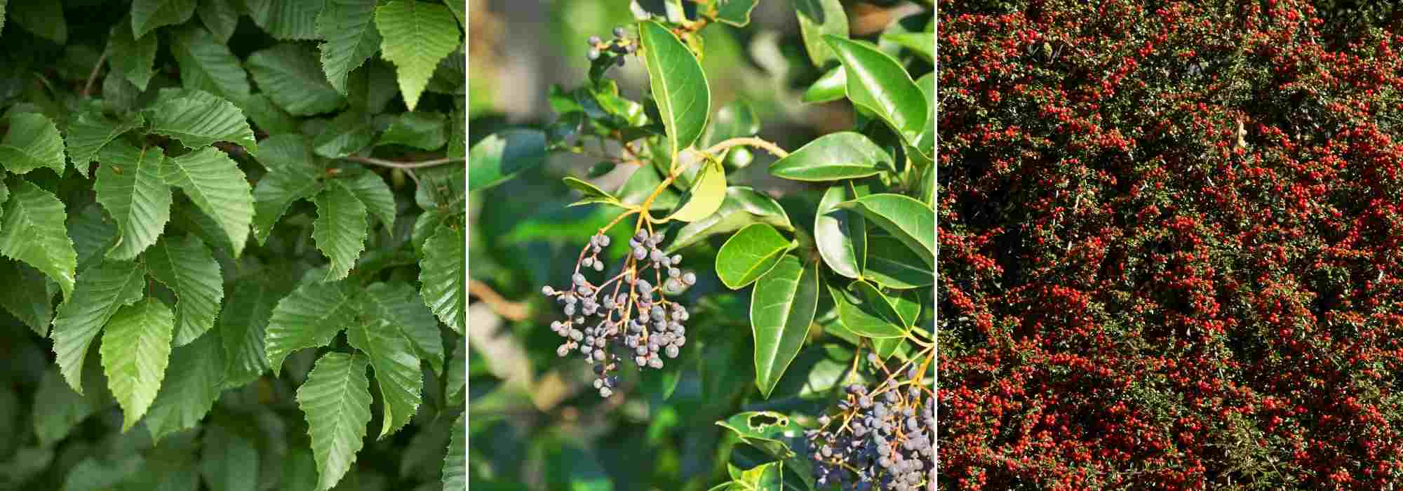 Certains persistants sont très efficaces en haie brise-vent comme l’if, le houx commun, le laurier-cerise, le buis, le pyracantha, les fusains japonais, les viornes persistantes, les genévriers, l’escallonia, le photinia, l’elaeagnus… Mais n’oublions pas aussi les semi-persistants ou les arbustes à feuillage marcescent comme le troène commun, les berbéris, les cotonéasters, le charme ou le hêtre.