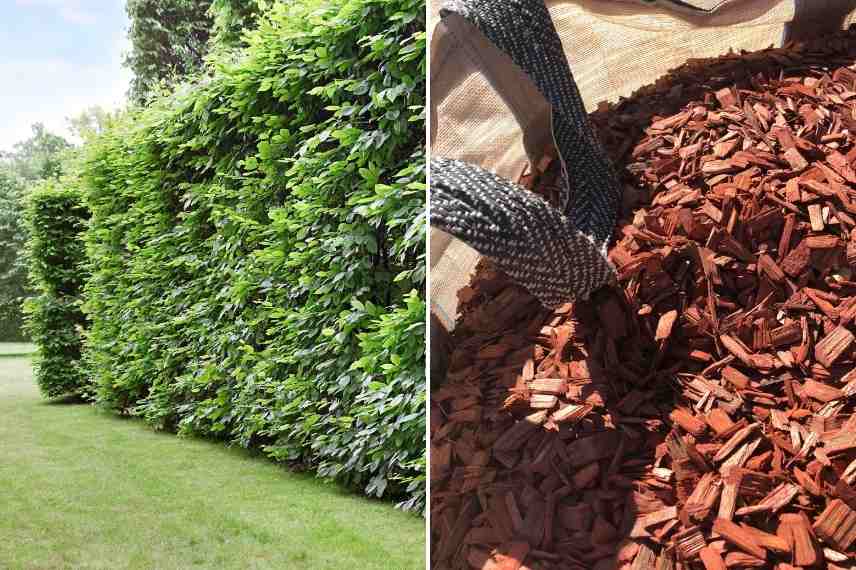 La taille permet de maintenir forme et dimensions raisonnables, le paillage de BRF ou mulch un amendement utile au pied des arbustes.