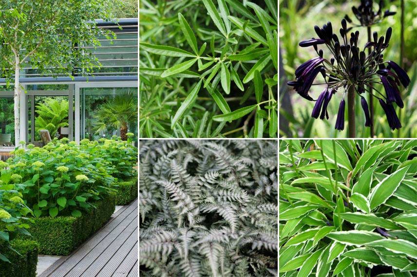 Les hortensias s’intègrent très bien dans les jardins de ville, pour créer une ambiance chic et moderne. Vous pouvez choisir l’Hydrangea arborescens ‘Annabelle’. Intégrez des éléments structurants, comme des topiaires et des bordures de buis, par exemple. Composez un jardin qui donne la priorité aux feuillages décoratifs plutôt qu’aux floraisons, pour créer un écrin vert, graphique et frais. Nous vous conseillons l’Hosta ‘Stiletto’, ainsi que la fougère asiatique Athyrium niponicum. Pensez aussi aux graminées, comme le Stipa pennata, idéal pour apporter beaucoup de légèreté ! Vous pouvez installer un grand bac rectangulaire, plus long que large, dans lequel vous planterez des bambous ou des prêles. Leurs tiges verticales en font des plantes très structurantes, appréciées pour leur style exotique et moderne. Pour les arbustes, choisissez du Choisya ternata, aussi appelé Oranger du Mexique, ainsi que des Pittosporum et Ligustrum japonicum ‘Texanum’ ! En bordure de massif, pour les délimiter, vous pouvez utiliser des Ophiopogons, petites plantes vivaces aux feuilles fines, linéaires. Pour ce qui est des floraisons, choisissez-les sobres et délicates : pensez par exemple à l’agapanthe ‘Black Magic’, qui offre de superbes inflorescences sphériques d’un bleu très foncé, presque noir.