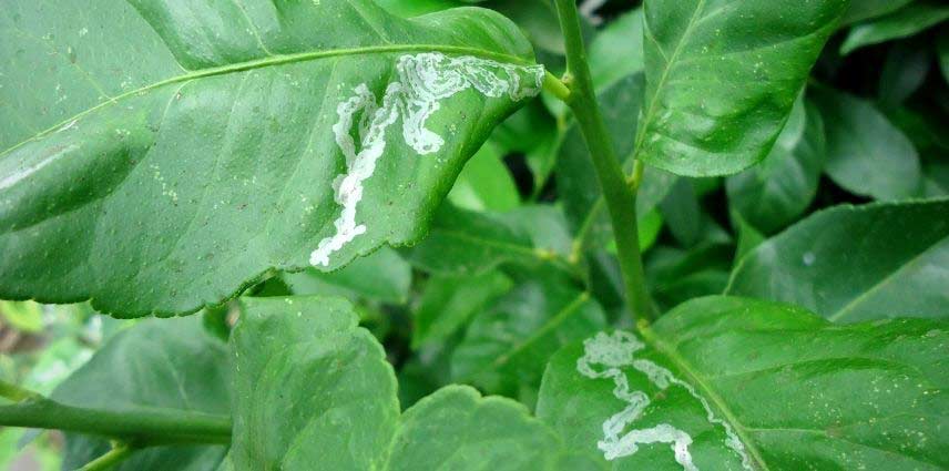 Les taches sinueuses décolorées sont le signe d’une attaque de la Mineuse des agrumes (photo : Scot Nelson)