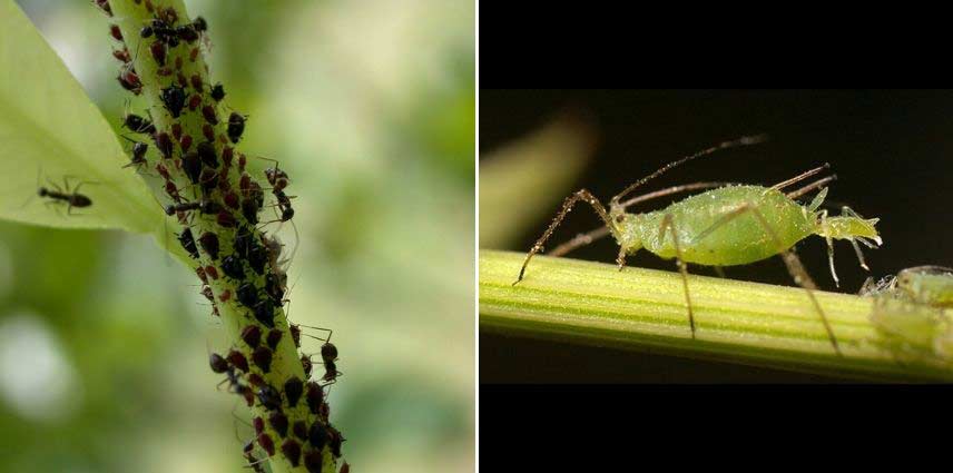 Les pucerons sont de petits insectes qui s’installent sur la plante et prélèvent la sève (photos : Scot Nelson / MedievalRich)