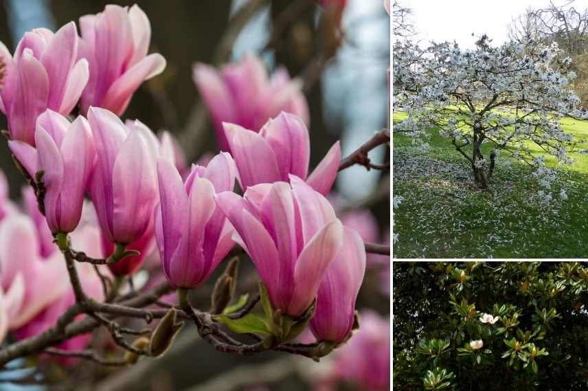 → Leurs atouts : une des plus belles floraisons du printemps, des fleurs en coupe dressées exceptionnelles, une forte rusticité, un port de plus en plus charmant avec les années chez les Magnolia soulangeana, dont les branches redescendent gracieusement près du sol.