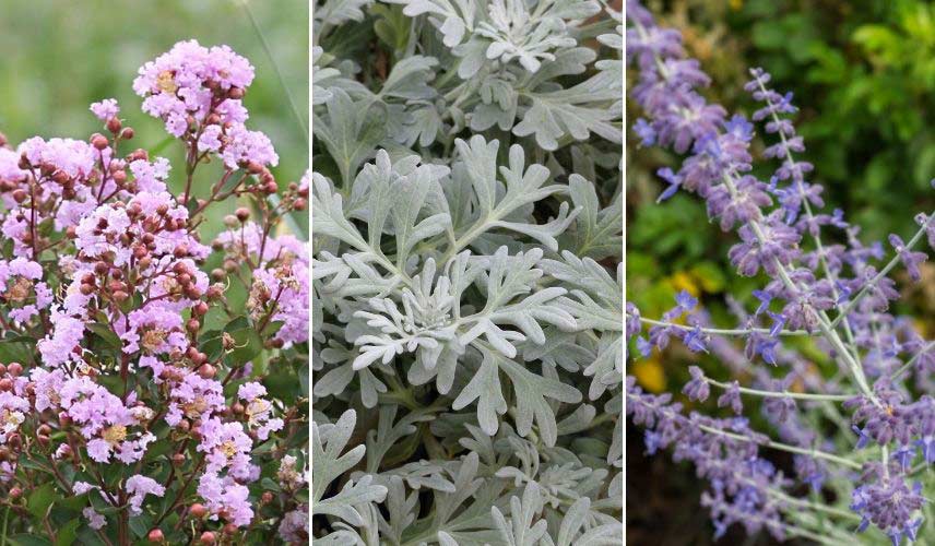 Lagerstroemia ‘Camaïeu d’Eté’, Artemisia stelleriana ‘Silver Brocade’, et Perovskia atriplicifolia Filagran (photo F. D. Richards)