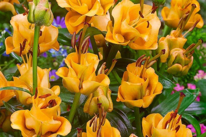 Cette nouvelle obtention de Lis a plus d’un atout : des fleurs doubles on ne peut plus originales, aux allures de roses. Une magnifique couleur orangée, à la fois tendre et lumineuse, surmontée de belles étamines brunes. Une floraison abondante qui démarre en début d’été pour se prolonger toute la période estivale. Et enfin, un merveilleux parfum ! Pour en profiter, n’hésitez pas à couper quelques-unes de ses fleurs qui se tiennent très bien en bouquets.