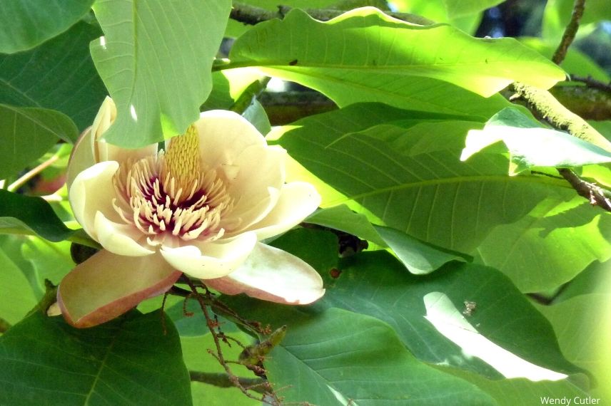 Un autre choix possible, le Magnolia obovata, caduc, mesurant 10 m de haut vous séduira par son très large feuillage et sa floraison crème en fin de printemps.